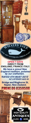 Clothing boutiques (including Patterson's Apparel - one of Cyndy's favourites!) and specialty shops line the main street and after some great shopping, enjoy a walk further along toward the waterfall, nestled in a steeper section of the neighbouring hill. Across the stream is a great knitwear factory shop. Then pick up a brochure at the White Island Tours office close by and plan a trip for now or the future. The volcanic scenery on White Island is unlike most and delivers a day of visual spectacle and landscape Just offshore from Whakatane is Whale Island - a short trip out from the heads. There are also good places to organise a fishing charter - the volcanic activity creates excellent conditions for fishing excursions. Try Allen's Ocean Connections or Baker, Carters, Gambler, Hardkase, Grae-Lyn, Merry, Phantom or Tuna Too Charters.